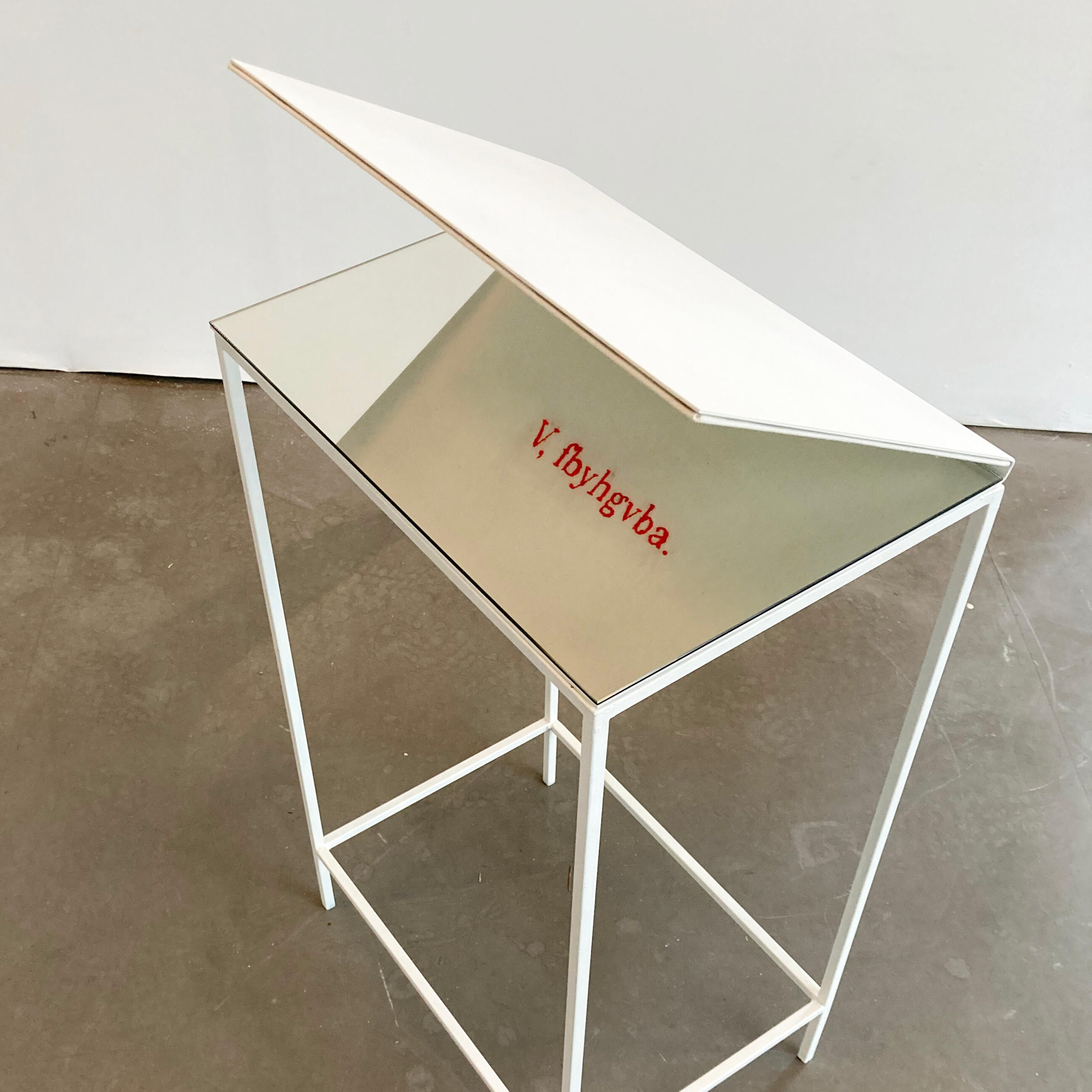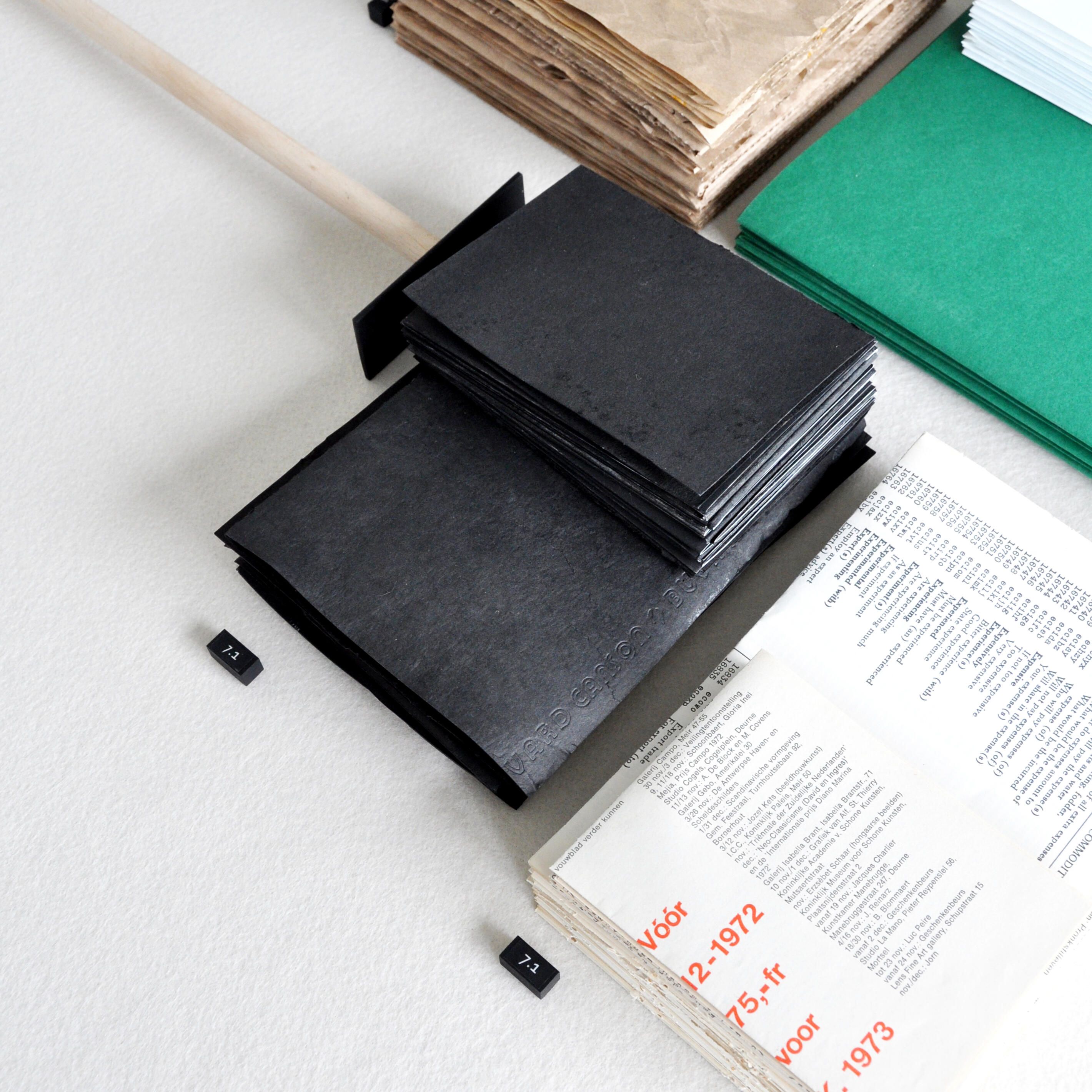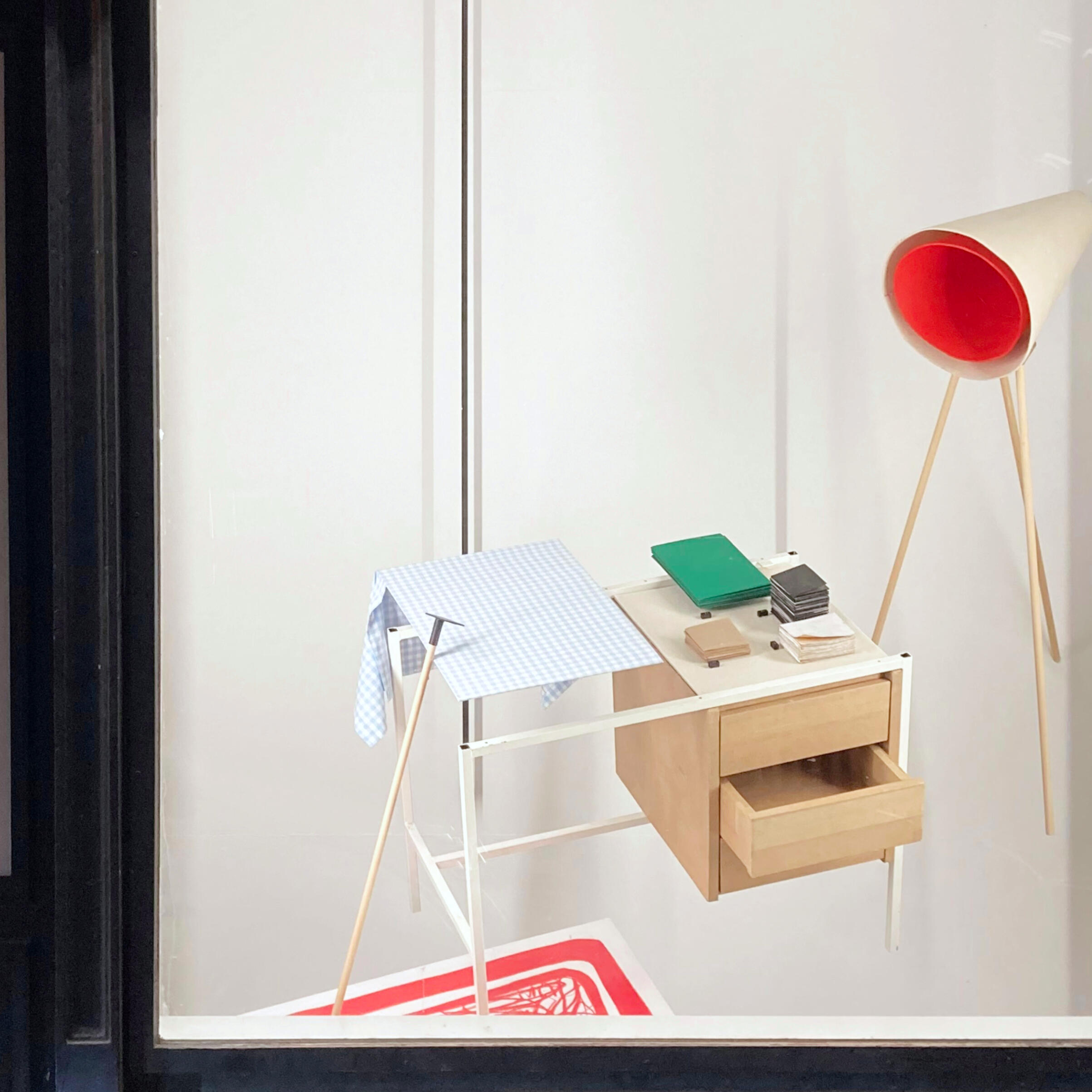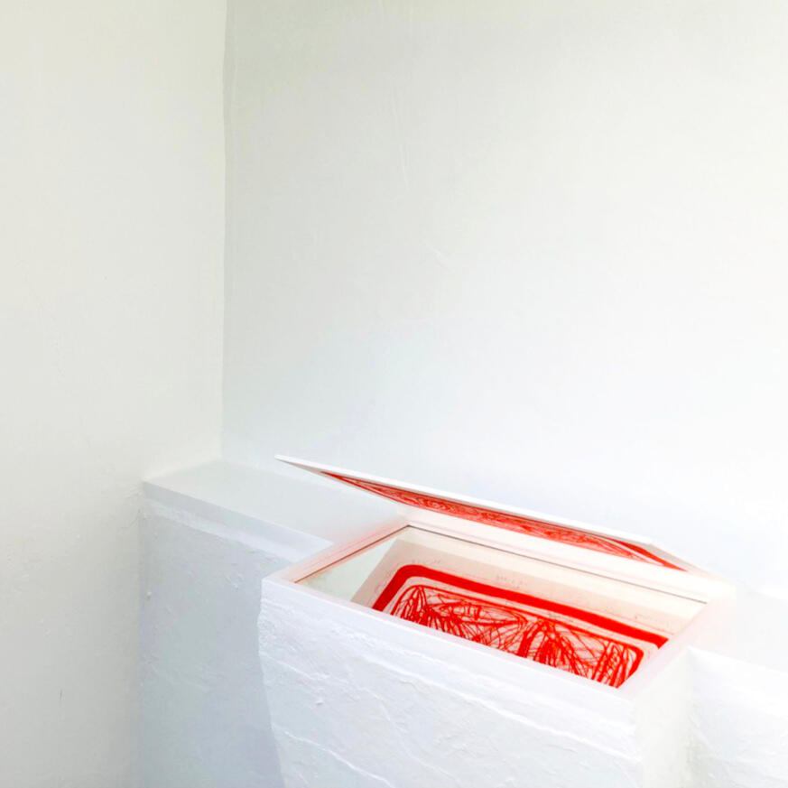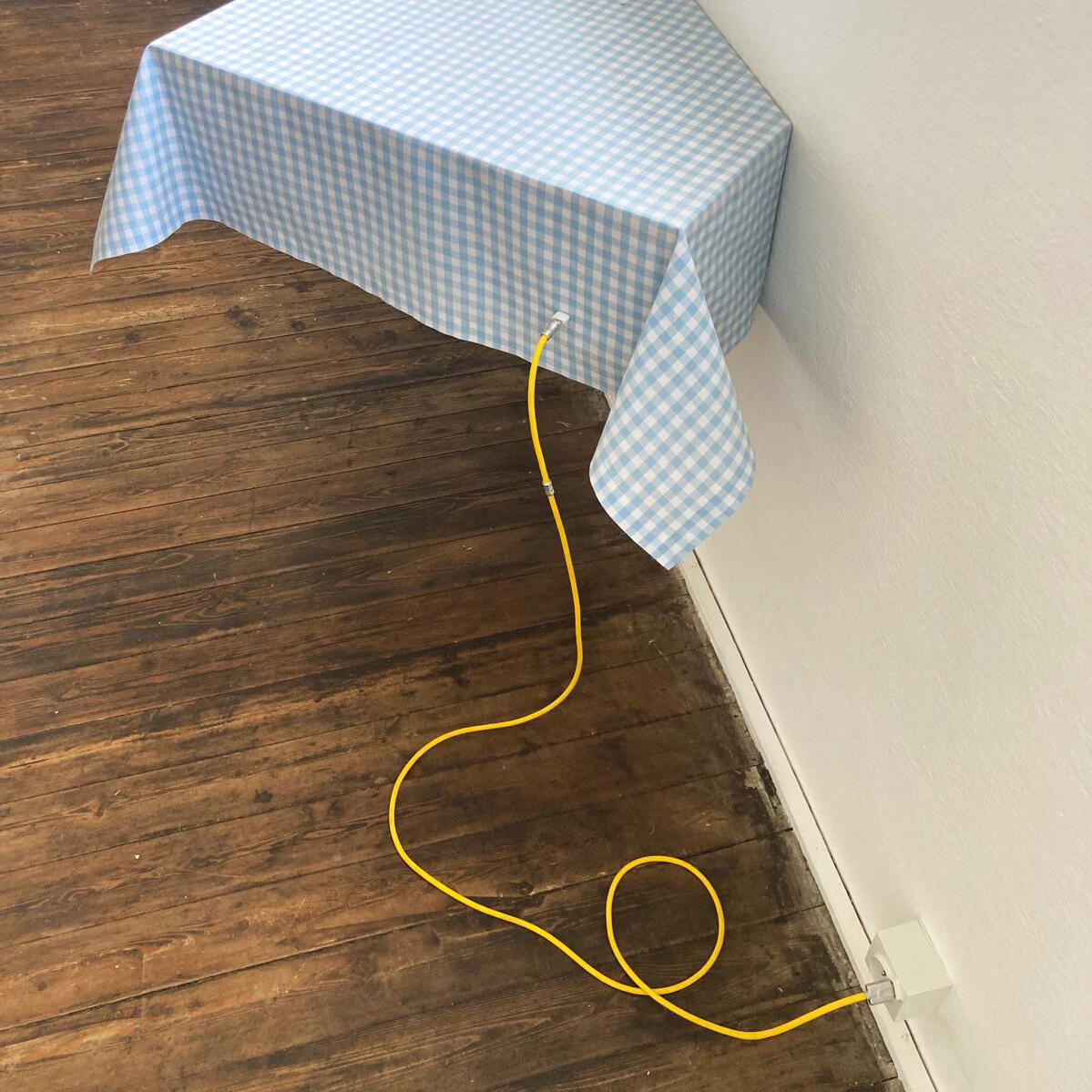 NLMijn werken zijn pogingen in flexibiliteit waarbij geoefend wordt los te laten wat ik denk te weten of te begrijpen.Protagonist (Tafel) ontleedt de wereld rondom mij via onleesbare plannen, structuren, netwerken, oplossingen, etc, terwijl voortdurend wisselend van positie tussen drager en bevrager.ENMy works are attempts at flexibility, practicing letting go of what I think I know or understand.Protagonist (Table) dissects the world around me through illegible plans, structures, networks, solutions, etc., while constantly shifting position between bearer and questioner.
